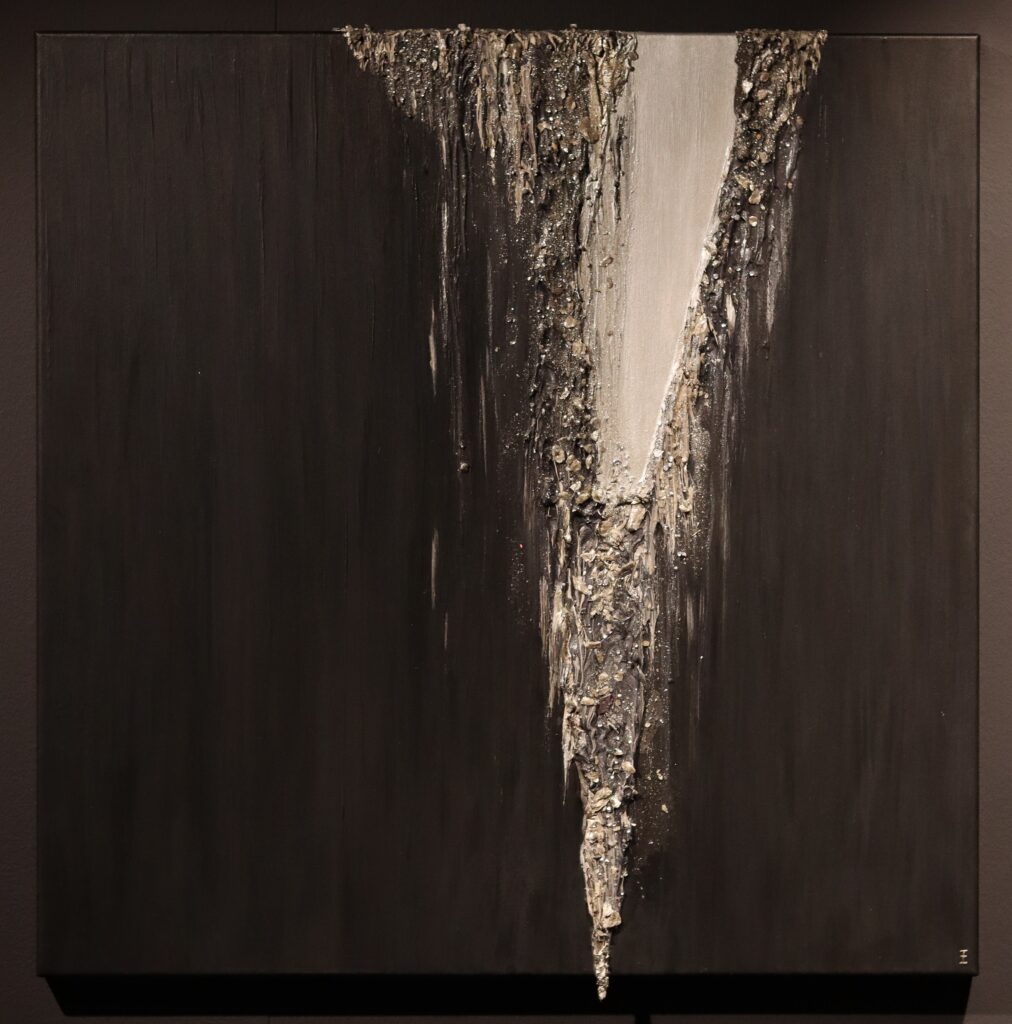 Vierluik, acryl olieverf en edelmetalen op MDF